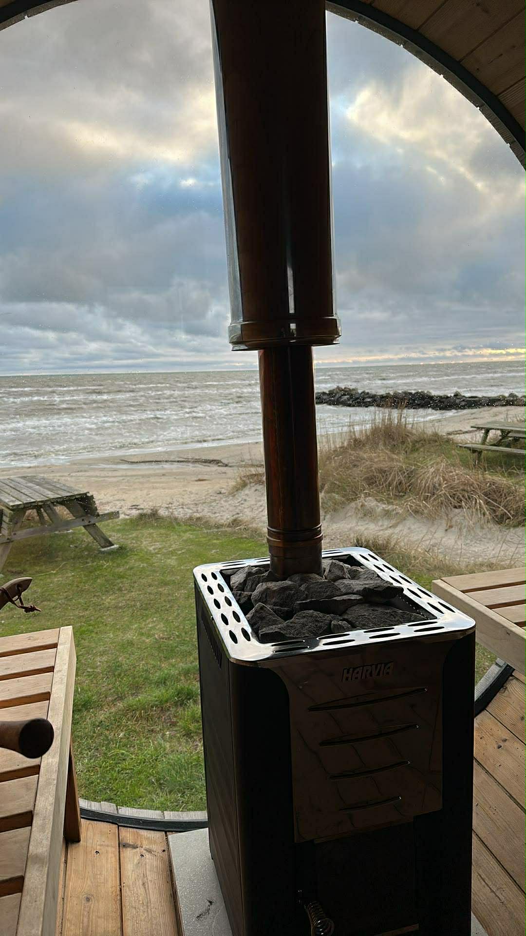Saunaen ved stranden danner rammen om ægte outdoor wellness, hvor varme, kulde og stilhed går hånd i hånd.
